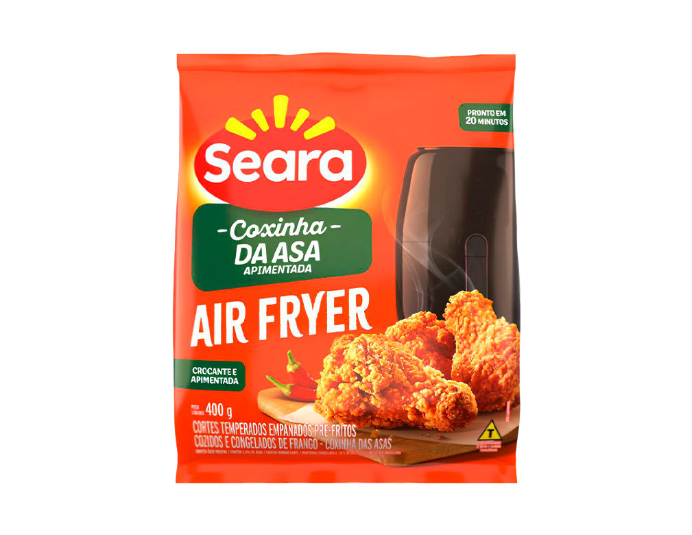 COXINHAS DAS ASAS DE FRANGO APIMENTADAS EMPANADAS CONGELADAS SEARA 400 G (CX 12 PCT) - Produto de alta qualidade para food service, bares e restaurantes. PMG ATACADISTA oferece os melhores preços em derivados de ave com garantia de procedência e qualidade.