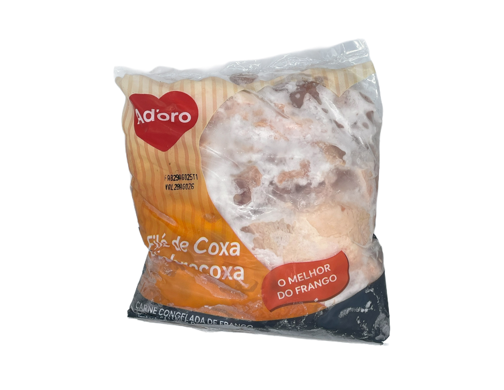 FILÉ DE COXAS E SOBRECOXAS DE FRANGO CONGELADO ADORO (CX 20 KILO)