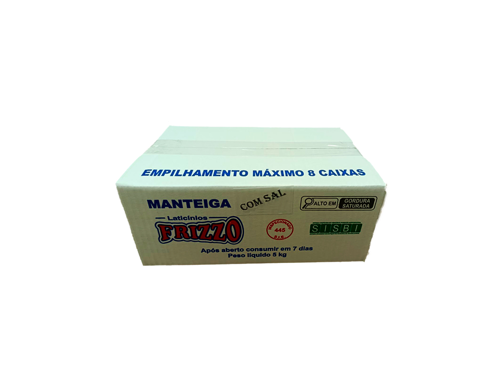 MANTEIGA COM SAL DE PRIMEIRA FRIZZO (CX 5 KILO) - Produto de alta qualidade para food service, bares e restaurantes. PMG ATACADISTA oferece os melhores preços em derivados de leite com garantia de procedência e qualidade.