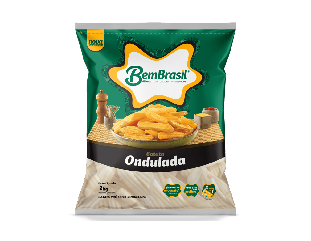 BATATA PALITO CONGELADA PRÉ FRITA COM CASCA 9 X 18 MM ONDULADA BEM BRASIL 2 KILO (CX 7 PCT) - Produto de alta qualidade para food service, bares e restaurantes. PMG ATACADISTA oferece os melhores preços em derivados de vegetal com garantia de procedência e qualidade.